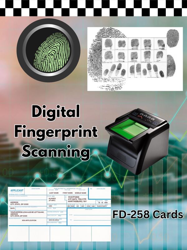 ⚠️ Note: Electronic submissions are not available at this time. We specialize in ink and roll or electronic captured physical fingerprint cards (FD-258). ADHS-Medical Marijuana Program, IVP applications for School workers and Non-IVP Clearance cards for DPS, FBI, DLLC and others accepted by federal and Arizona agencies. EFT files can be created on a USB for ATF Firearm online application uploading.